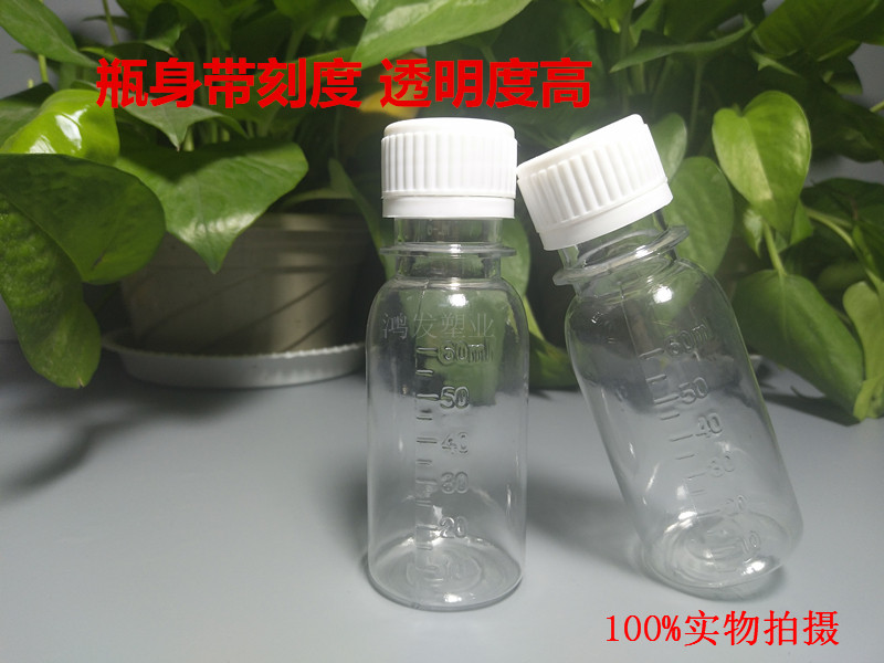 60ml transparent plastic bottle liquid sample sub-bottling PET bottle with scale small mouth anti-theft cap seal