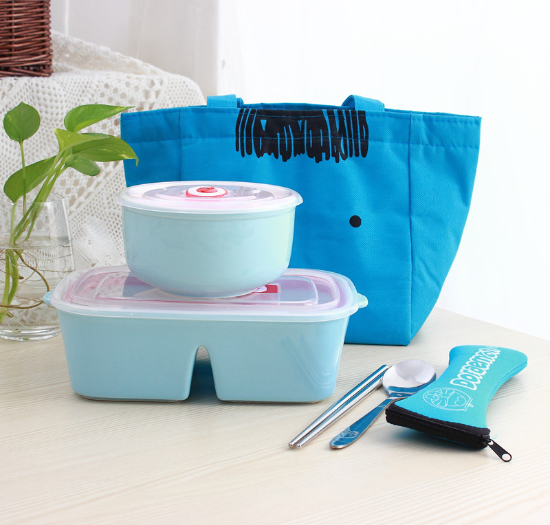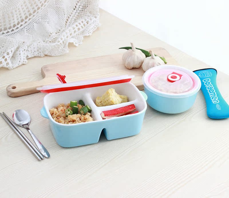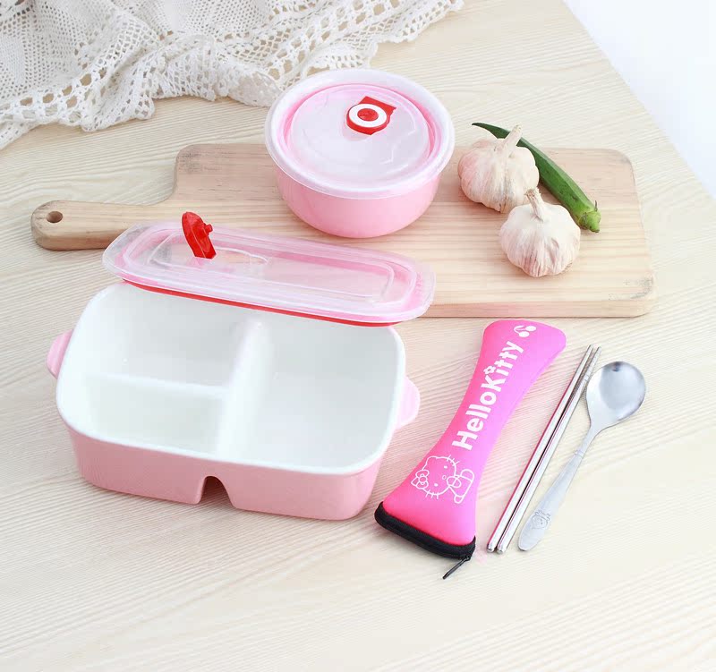 Three-grid lunch box kT cat (send a red chopstick spoon three-grid lunch box with a blue chopstick spoon three-grid lunch box pink dot cat (send a red chopstick spoon three-grid lunch box rose (send a red chopstick spoon three-grid lunch box eyes (send a blue chopstick spoon three-lattice meal)