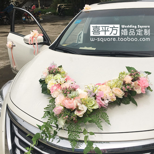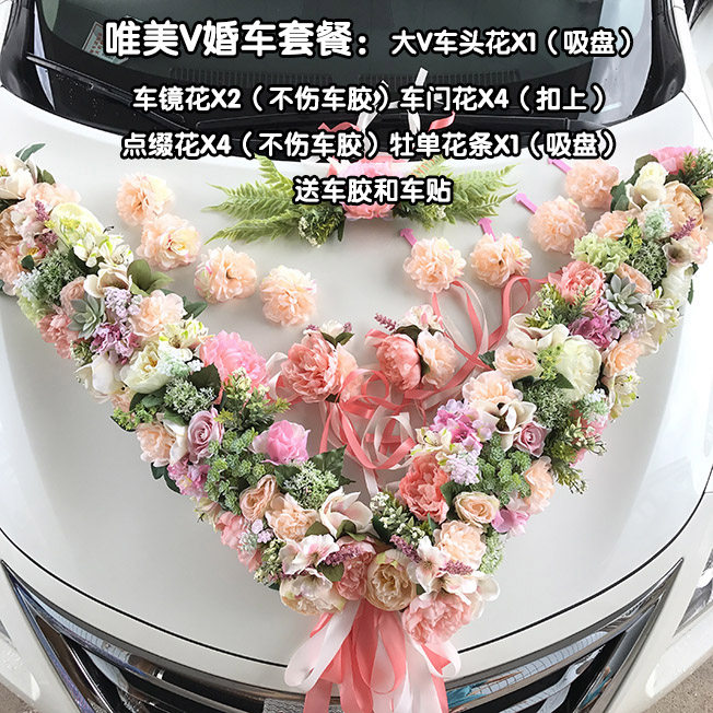 Meritocratic V wedding courtesy car covered dining meritocratic V head flower a peony flower strip one gorgeous rear mirror flowers a car door flowers a dot decorated with a back mirror flowers one widened into 25cm plus