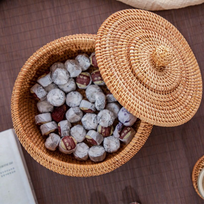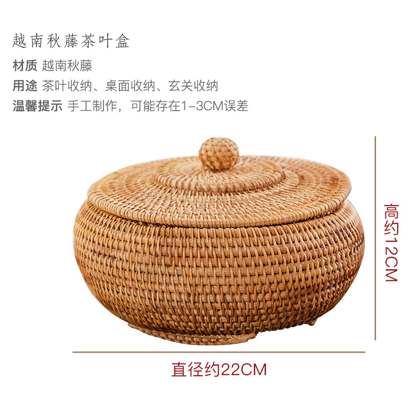 Vietnamese autumn rattan handmade natural rattan breathable storage tea cans Pu'er storage cans snack cans savings basket tea set
