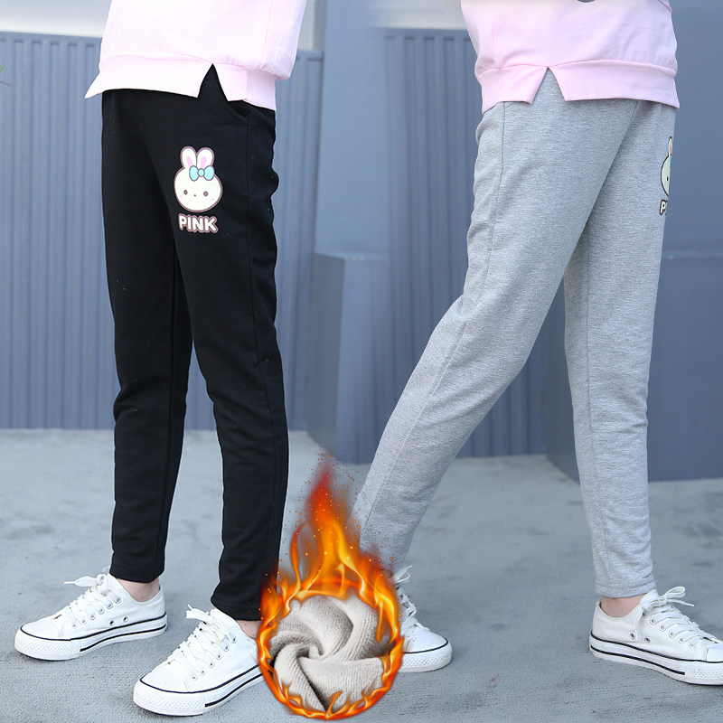 Girls' casual pants autumn and winter plus velvet new trendy trousers children 9-11 years old Korean version of the big children's loose cartoon pants