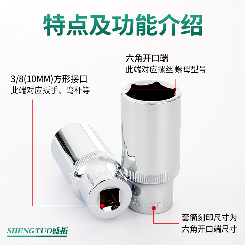 Sheng Tuo Medium Fly Lengthened Sleeve Head Ratchet Wrench Plus Length Sleeve Head 3 8 Mid Fly Inner Socket Sleeve 10 Square Mouth