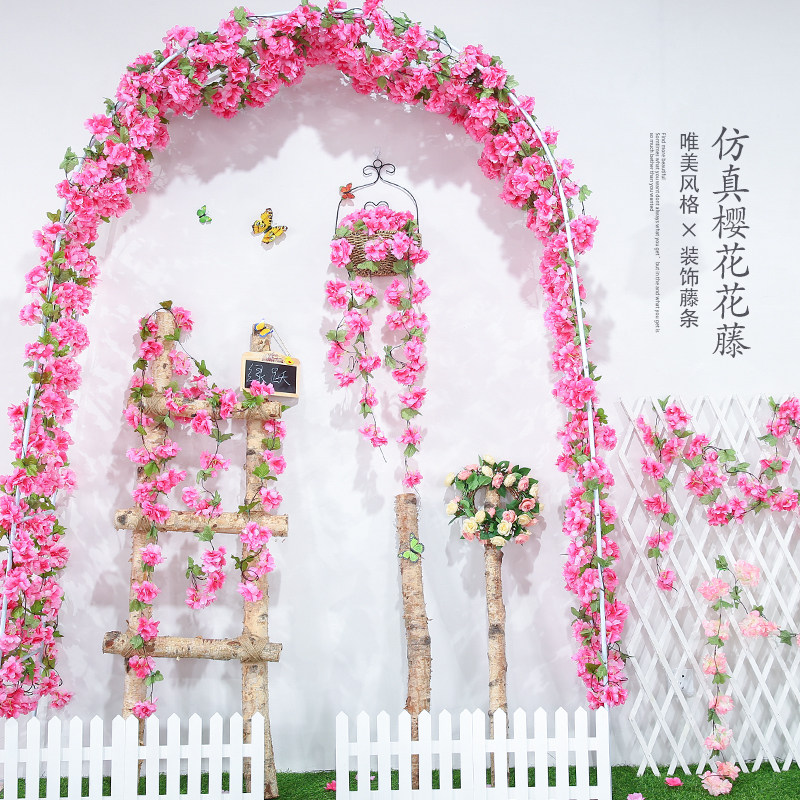 Fake flower rattan cherry blossom wedding flower room decoration winding air conditioning pipe vine plastic silk flower pipe wall hanging background
