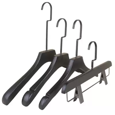 Black solid wood hanger clothing store non-slip drying rack hotel wooden clothes hanging natural log material