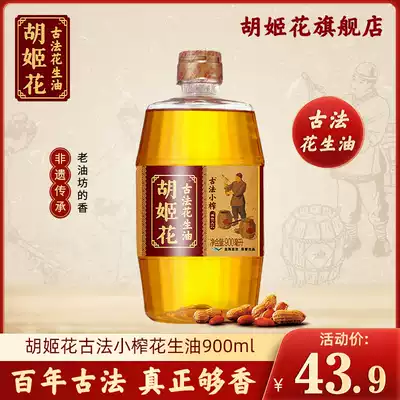 Huji flower ancient method small squeezed peanut oil 900ml small bottle of dormitory stir-fry Shandong peanut edible oil baking oil