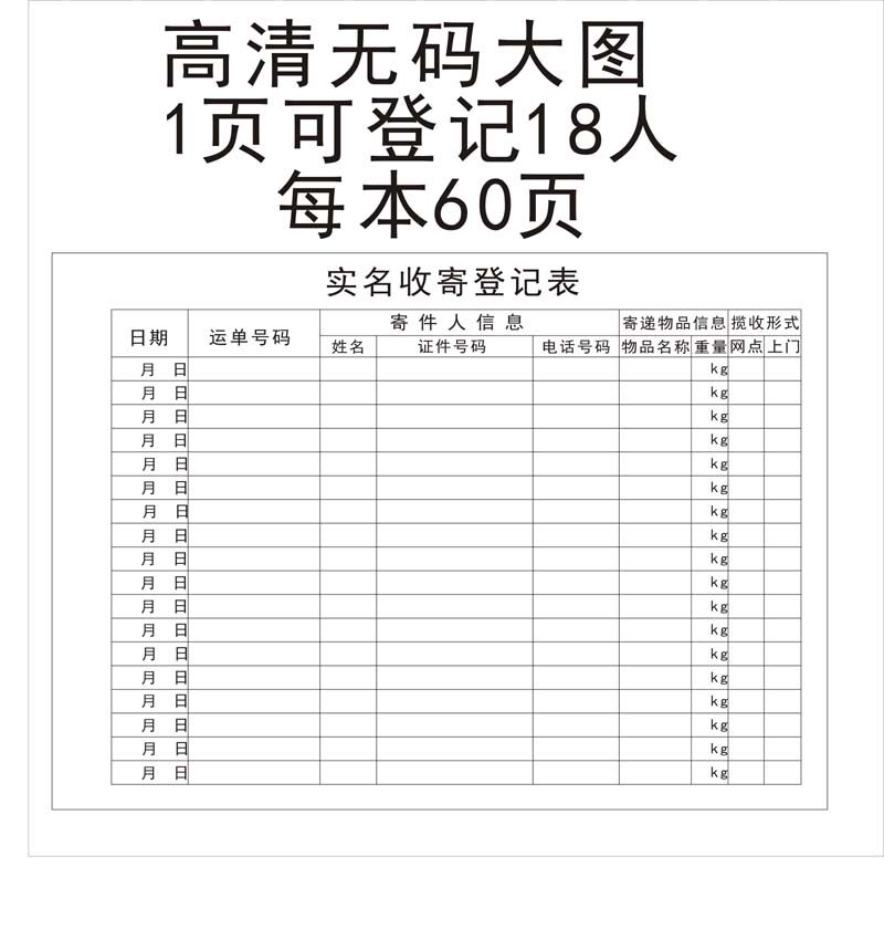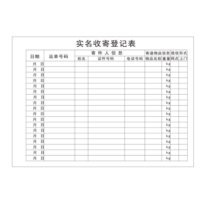 Express logistics Delivery Industry network Customer real-name system registration form Logistics delivery receipt and delivery registration form