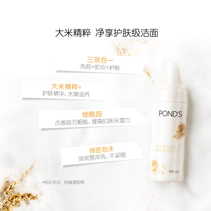 (Double 12 Carnival) Pang's rice quintessence amino acid Cleansing Mousse bubble makeup remover mild and not tight 150ml * 2