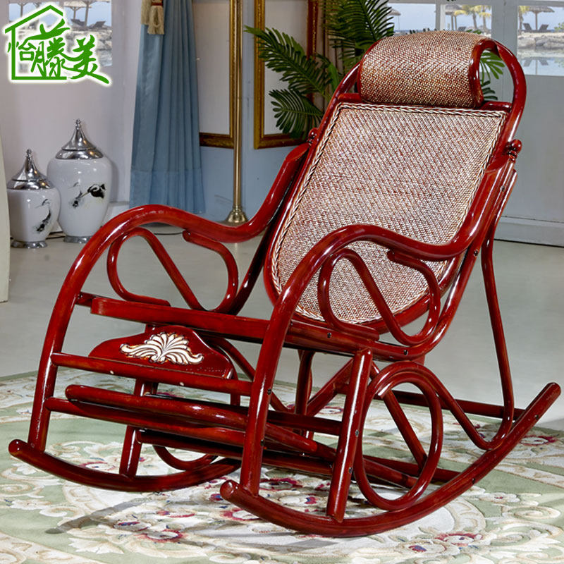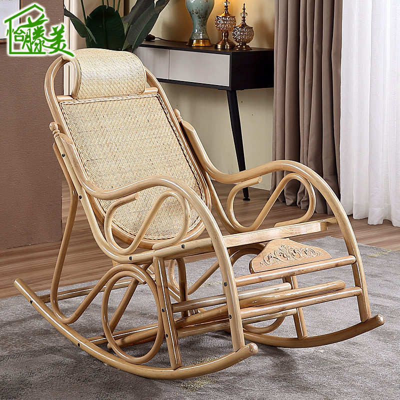 Balcony real rattan woven rocking chair Lazy rattan chair Household adult old man rocking chair Rattan art leisure chair Cool chair
