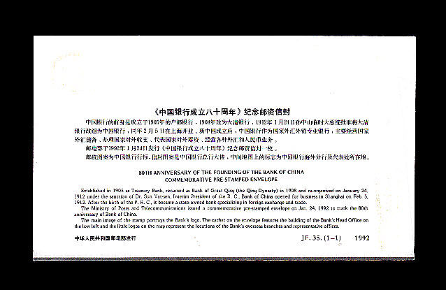 The Postal Service of the School of China's "80 Anniversary of the Establishment of the Bank of China" Commemorates the Postage Envelope