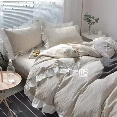 Cotton Water Washing Cotton Four Piece Cotton Pink Cute Girl Heart Korean Princess Bed Sheets quilt cover Bedding