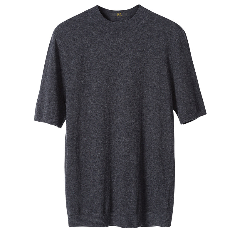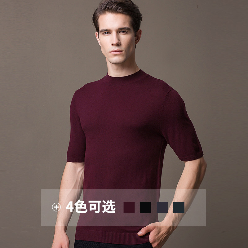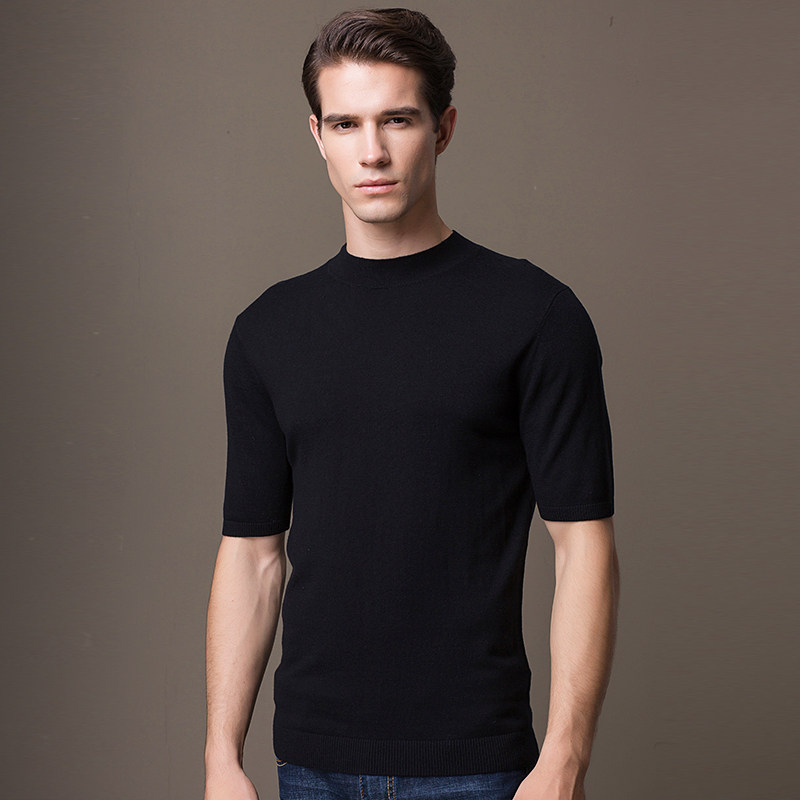 Baron Half High collar short sleeve sweater Men's half sleeve pure color sheep sweatshirt Korean version Body Knit Undershirt Fall Thin