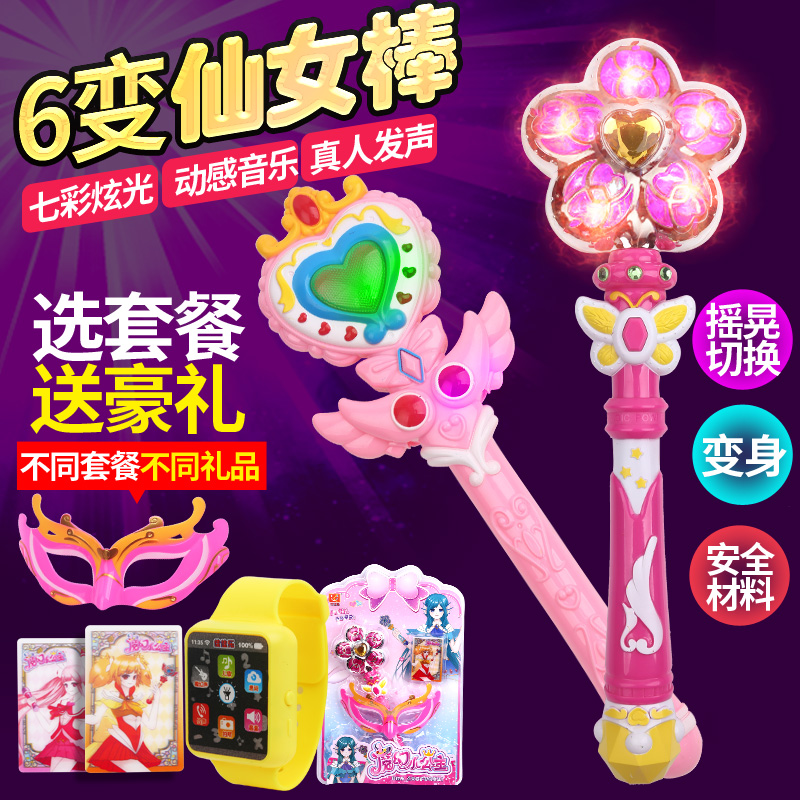 Luminous fairy stick flash music magic stick little fairy magic wand children toy girl mask watch