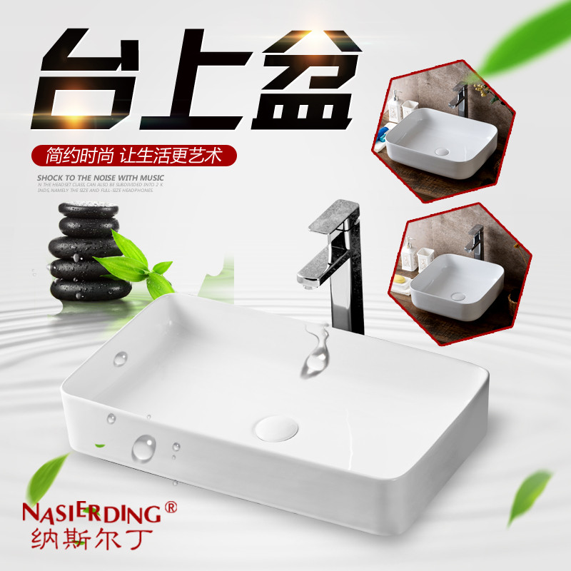Terrace Basin White Makeup Room Washbasin Washbasin Washbasin Wash Terrace Basin Ceramic Art Basin Tray Large Size Square Basin