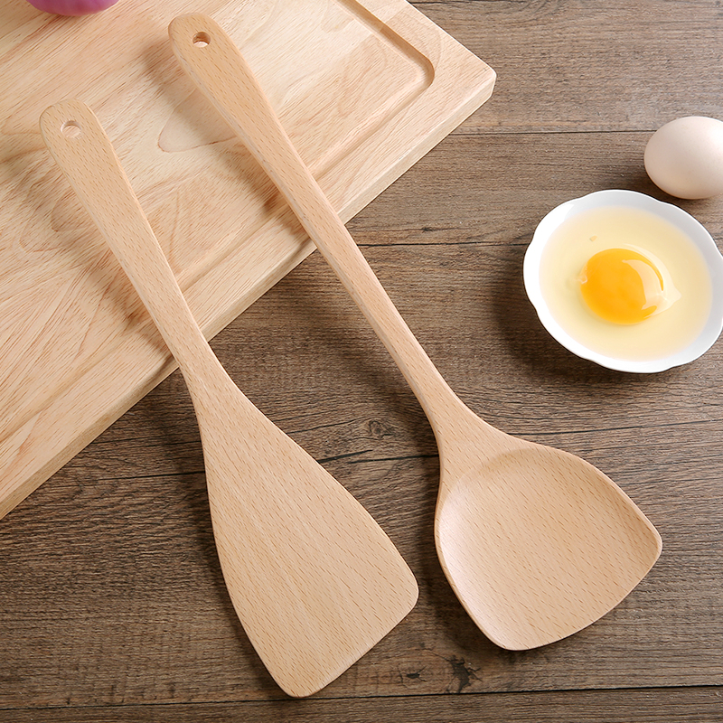 Japanese natural no lacquered beech wood pan shovel not covered with pan special shovel cutlery long handle fried vegetable shovel wood shovel rice spoon suit