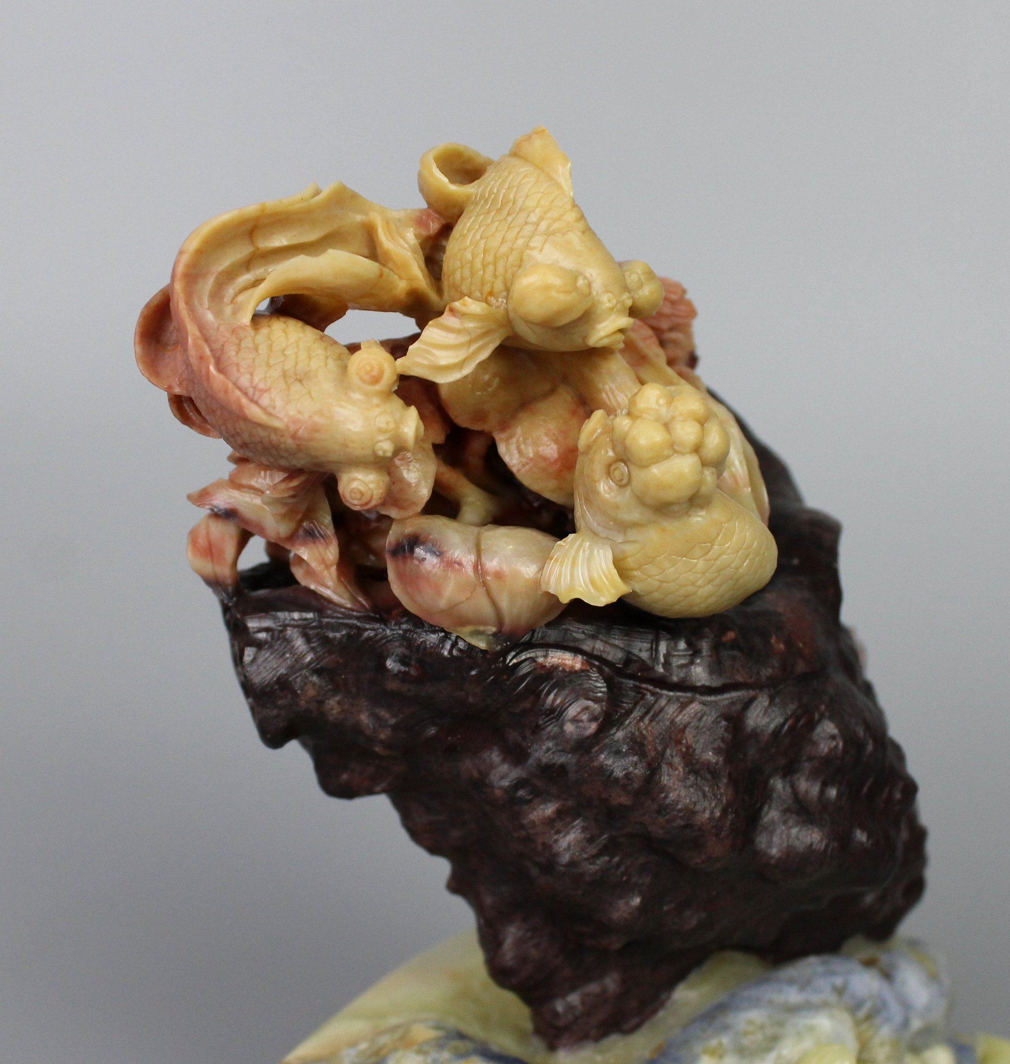 Bluestone carving Zhai Jinyu Mantang Zhoucun dragon egg fish conch exquisite decoration Blue flower nail handicraft pretty color