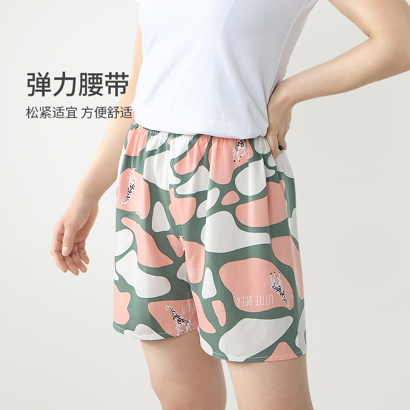 Women's summer three-point shorts, flat-footed pants, middle-aged and elderly people's rayon cotton silk beach pants plus fertilizer and enlarged home air-conditioning pajamas