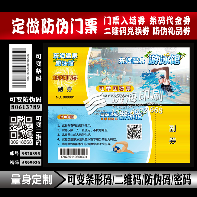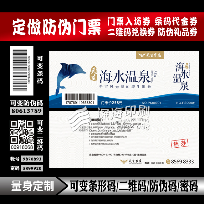 Custom Barcode Ticket Wind Scenic Spot Tickets Variable Data Two Dimensional Code Water Park Amusement Park Print Set