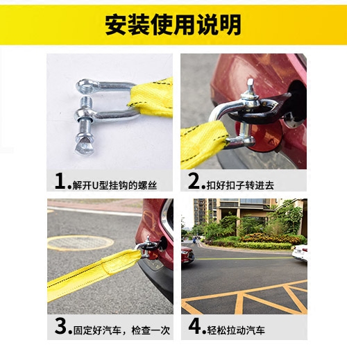 Car cart rope forcefully thickened plus coarse 4 m cross-country pull car rope trolley traction with self-driving tour emergency tool