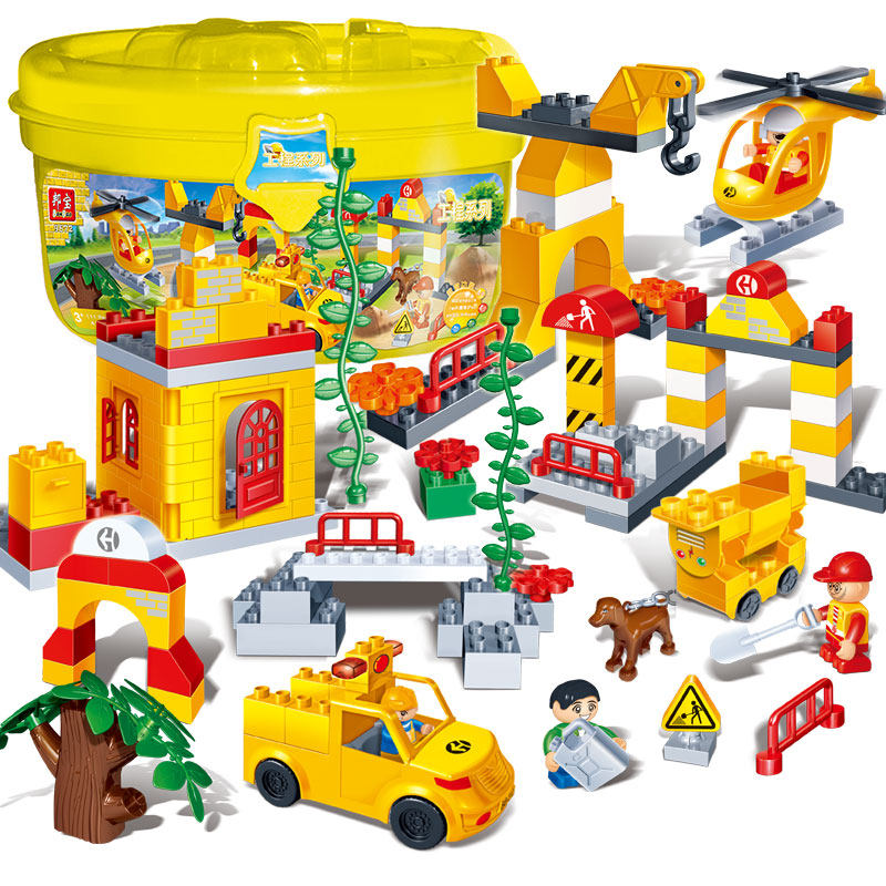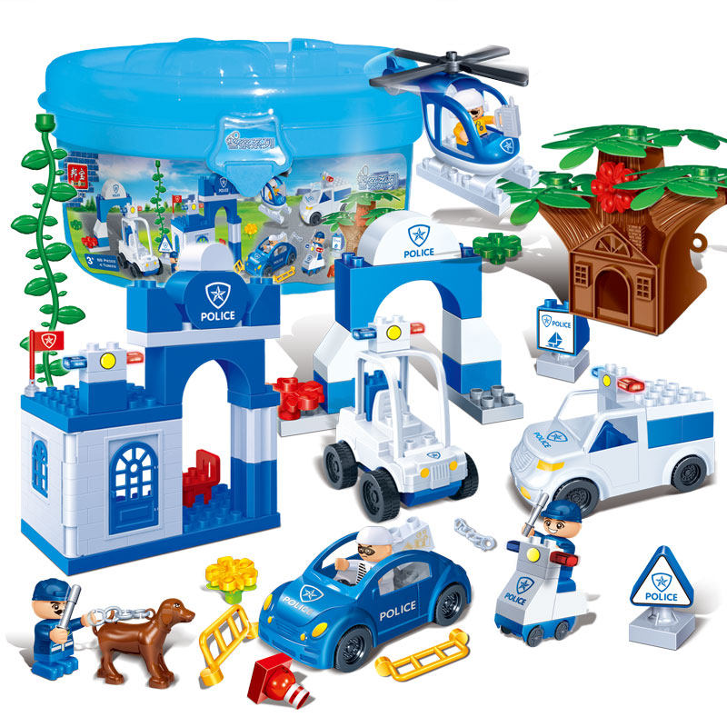 Bunbao 9642 large grain 3 Spelling Inserts 5-year-old Children's Toy Toy Barrel Fire Slide Police Engineering Car Gift