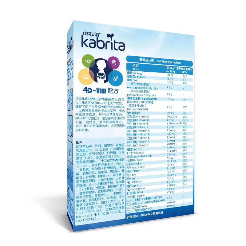 Jiabeet 4 - eyed children's milk powder 3 - 12 years old Dutch imported 150g of goat milk powder