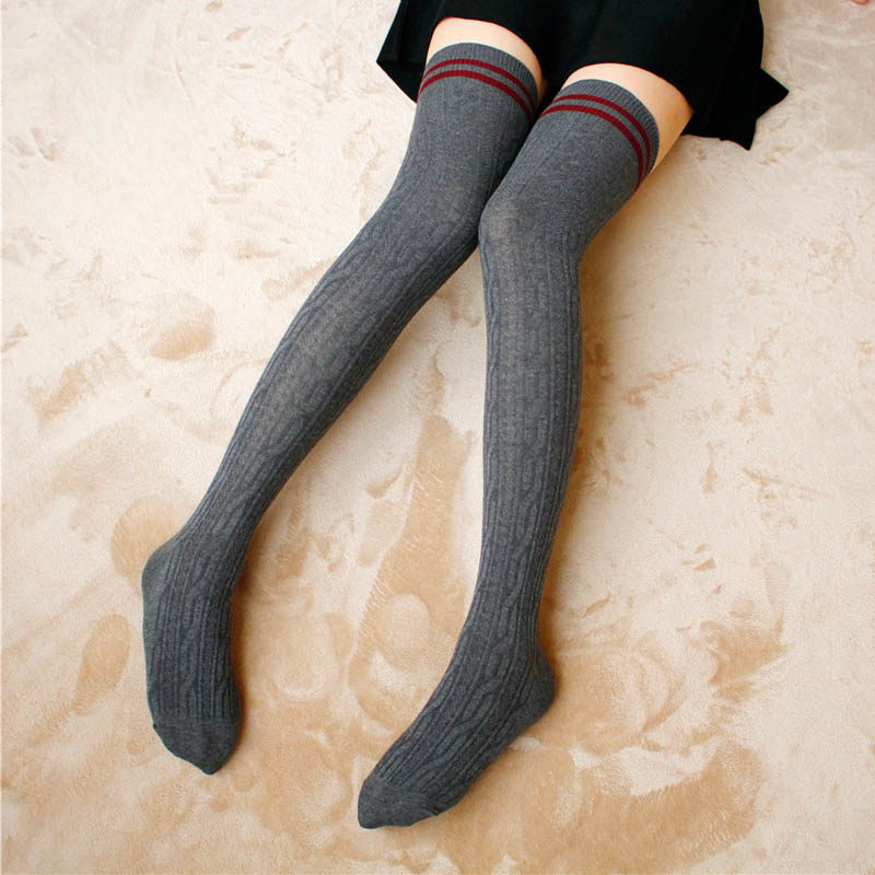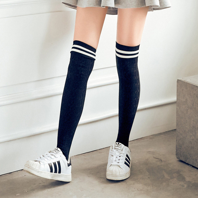 Stockings women's non-slip college wind two bars half over the knee socks autumn all-match boots socks Korean high socks