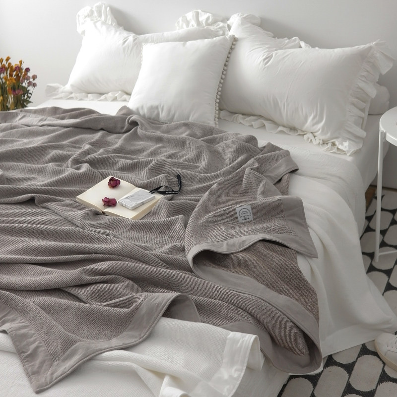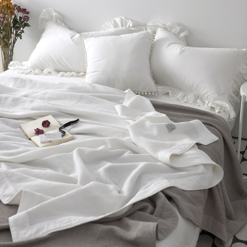 Export Japan simple waffle blanket Japanese cotton air conditioning towel blanket Solid color double nap blanket blanket