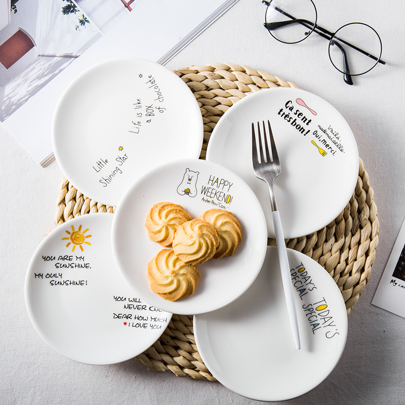 Good morning 6 inch flat plate My sunshine 6 inch shallow plate French 6 inch flat plate Darling 6 inch shallow plate simple Europe 6 inch shallow plate natural rock pattern 6 inch shallow plate dream small world 6 inch
