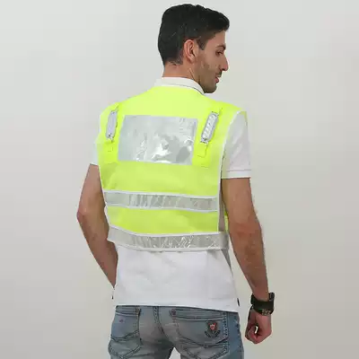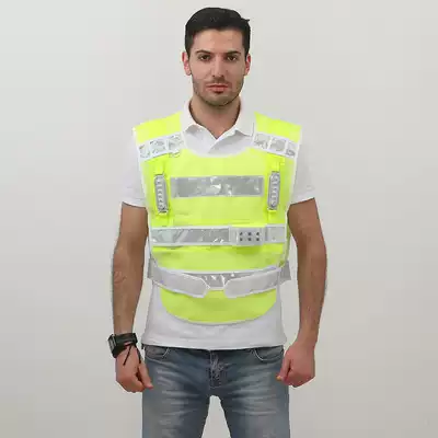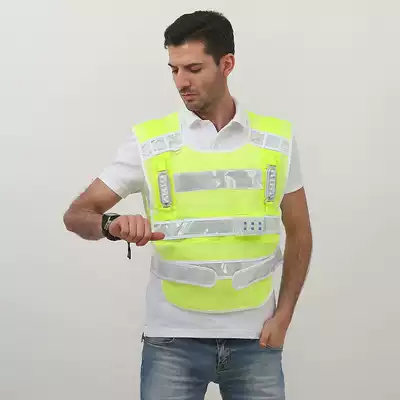 LED rechargeable reflective vest with flashing lights Red and blue flashing road administration vest Road patrol traffic vest printing