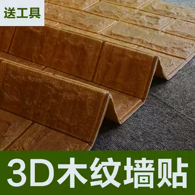 Wonderful wallpaper self-adhesive wood grain 3d three-dimensional waterproof decoration room dormitory TV Wall bedroom wall bedside wall sticker