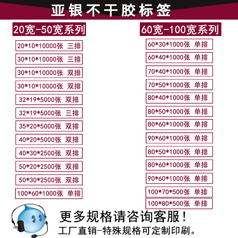 Jinbao Brothers Barcode Sticker Asian Silver Label Paper Matte Silver Waterproof pet Sticker 20 wide to 100 wide series