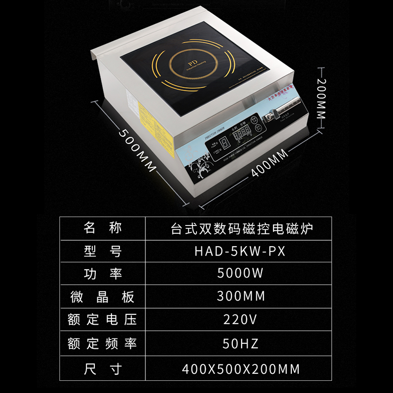 Henganda commercial induction cookers 5KW plane commercial electromagnetic oven soup furnace 5000W high-power plane magnetic control timing