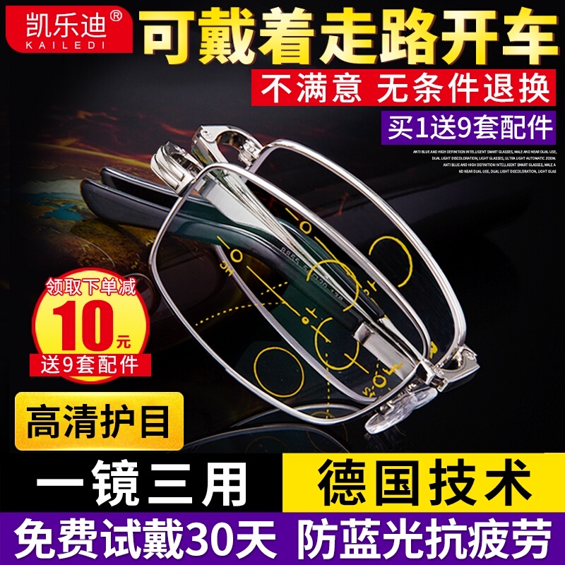German reading glasses Men's and near dual-use anti-blue light anti-fatigue high-definition intelligent far, near and near three-use elderly glasses women