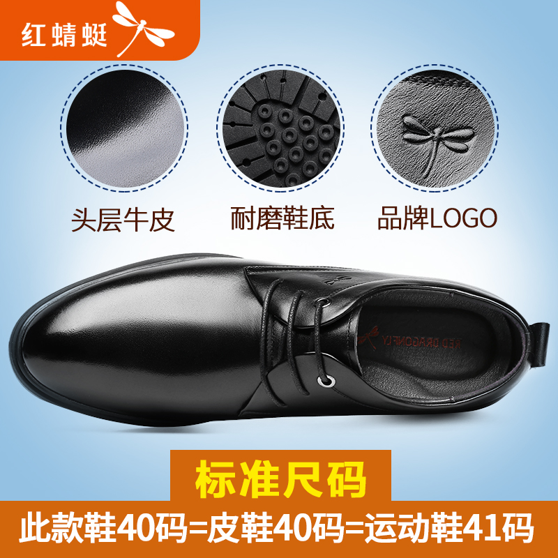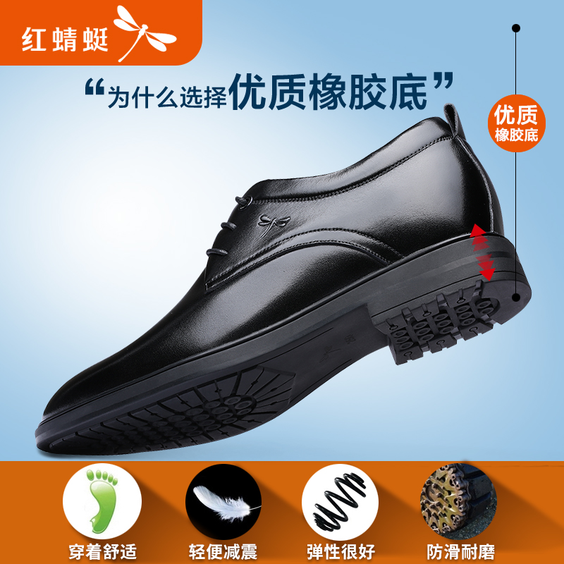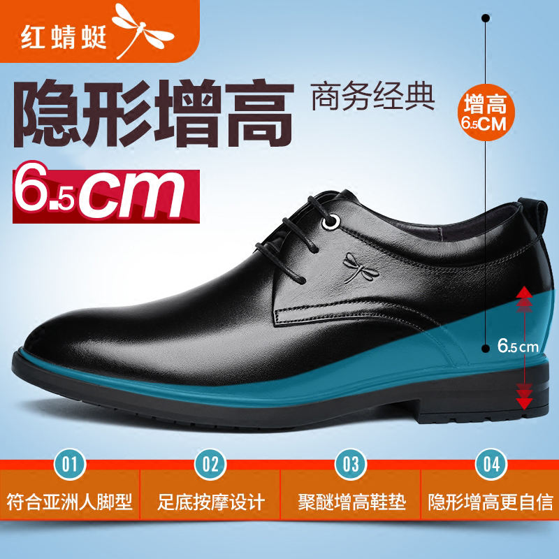 Red dragonfly inner height increase men's shoes men's invisible height increase shoes leather business formal leather shoes men's fashion all-match shoes