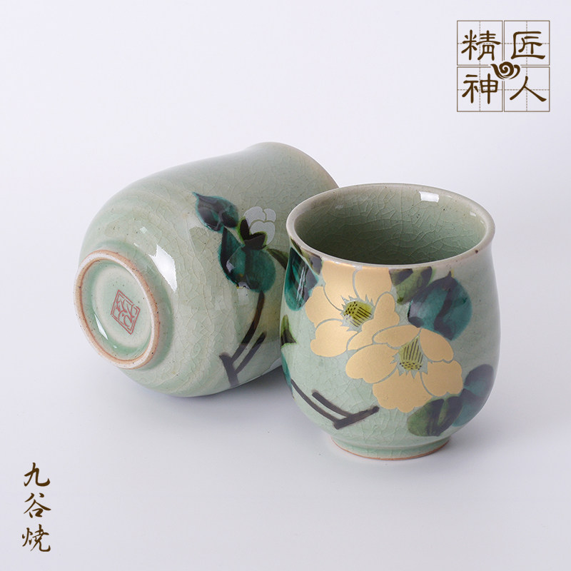 Spot Japanese Kutani burnt gold and silver Tsubaki couple cup ice cracked glaze tea cup water cup ceramic cup wedding gift - Taobao