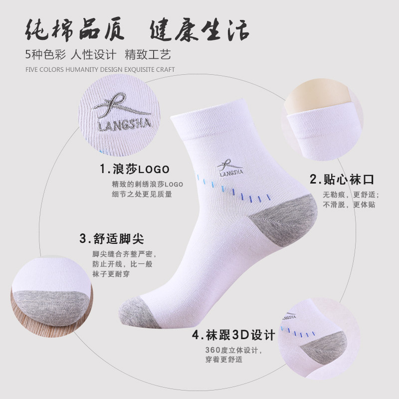 Langsha men's spring and autumn socks pure cotton socks men's business socks wear sweat absorbing breathable cotton four seasons men