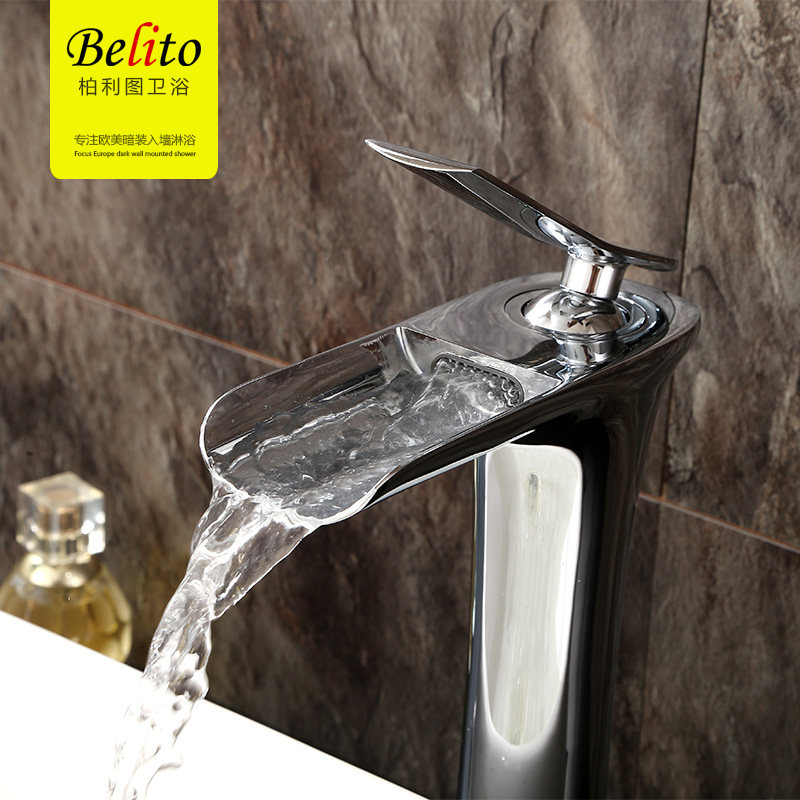 Bailitu bathroom bathroom washbasin washbasin washbasin waterfall single hole full copper basin hot and cold water faucet