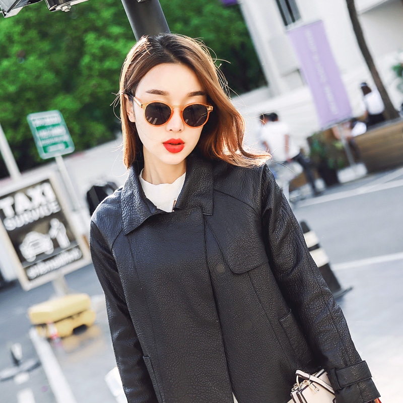 Real leather large size leather women fat mm200 pounds 2017 new fat plus large short thin A version of bubble leather jacket