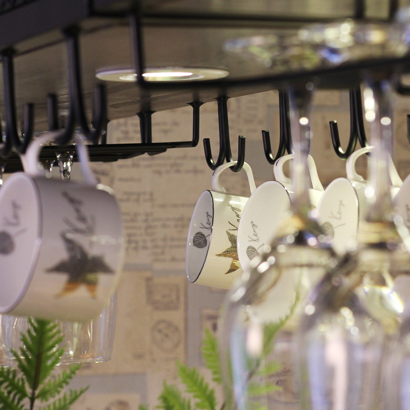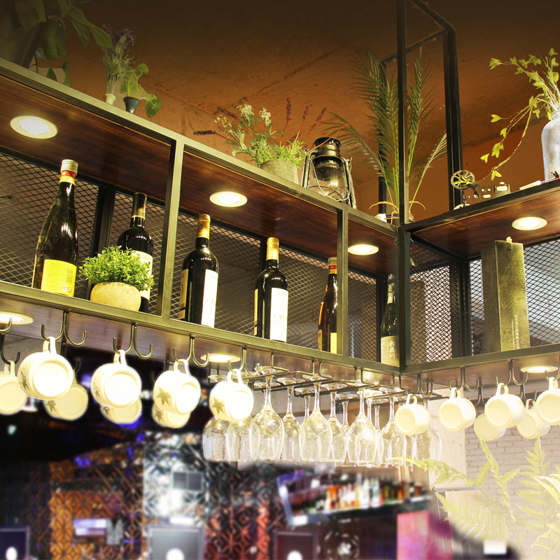American Wrought iron solid wood upside down wine glass rack Bar hanging cabinet Wine cabinet Bar wine rack Decorative rack Hanging hanger