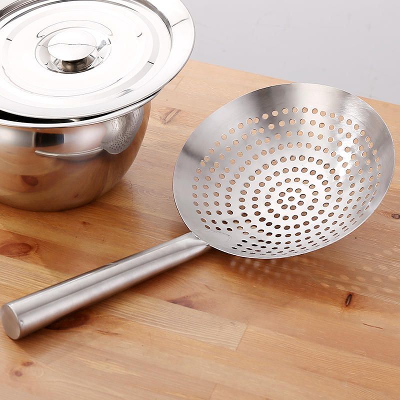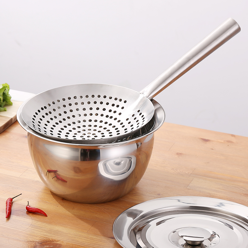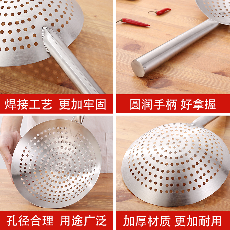 Stainless Steel Fried Large Leak Spoon Drain Net Household Oil Basin Kitchen Oil Drum Filter Screen Large Leak Spoon Suit Commercial