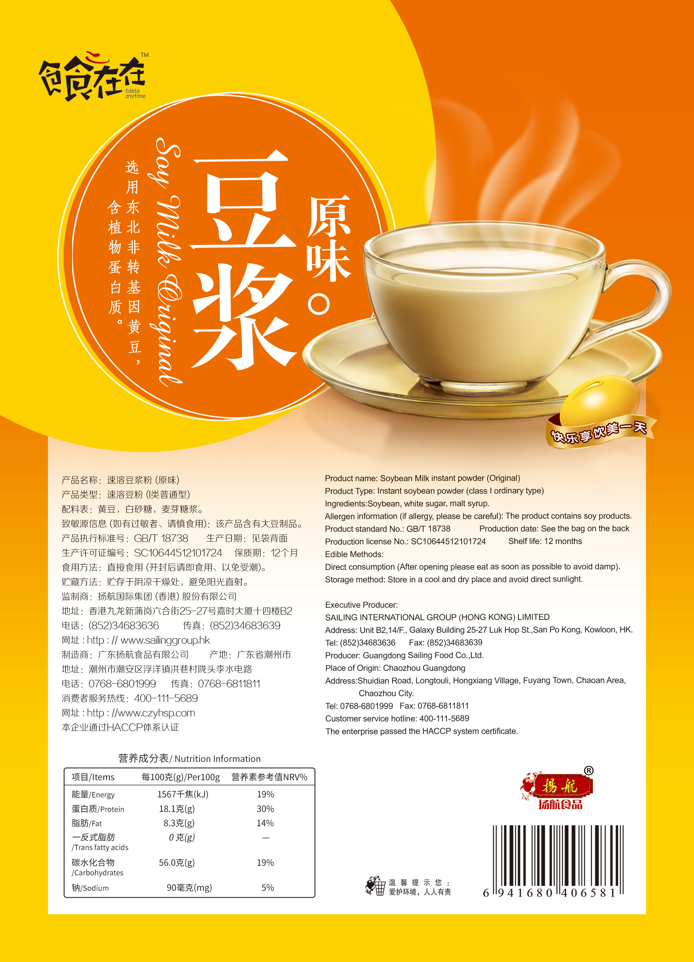 Yanghang original soy milk 168g sweet instant pure soy milk powder commercial brewed beverage soy powder nutritious breakfast small bag