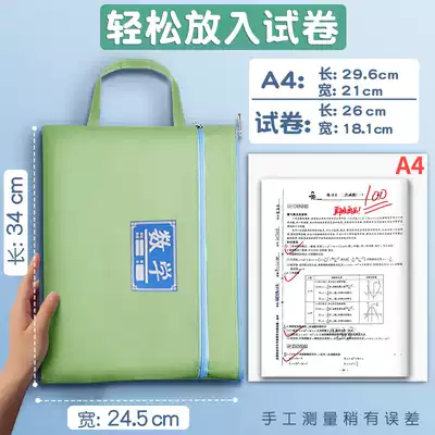 a4 subject classification file bag zipper canvas for primary school students with large capacity test paper storage bag book bag learning test book bag portable multi-layer learning tutorial bag homework with data score