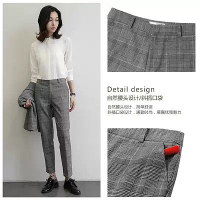 2021 spring and autumn new pants British retro plaid casual pants women's suit pants small feet thin nine-point pants