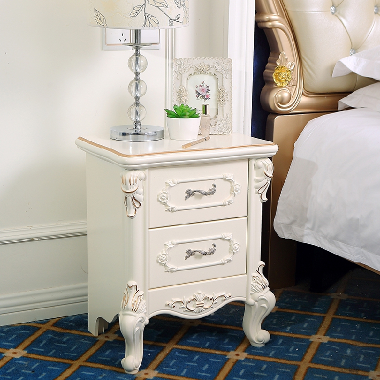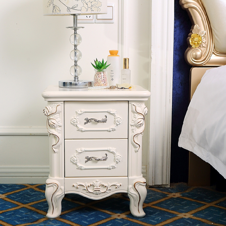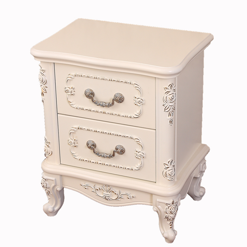 Simple European white bed cabinet Pastoral solid wood locker Bedroom bedside cabinet Full French chest of drawers Bucket cabinet