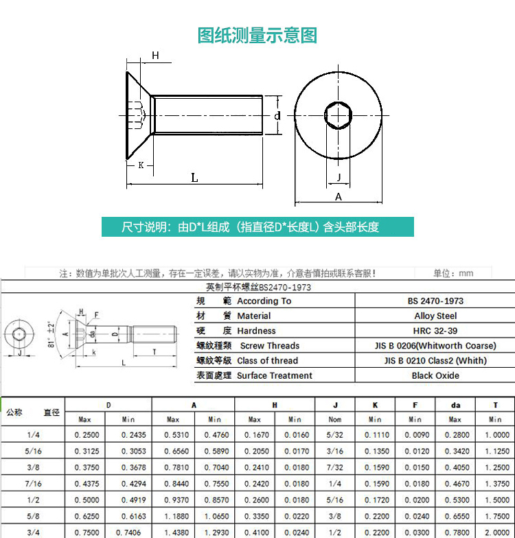 10 9 Class 1 4-20 Ying made flat cup screw 3 16 US made 5 16-18 flat countersunk head inner hexagon bolt 3 8