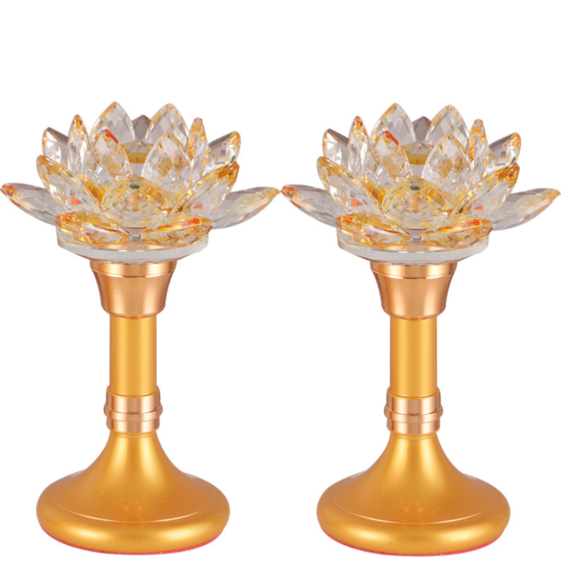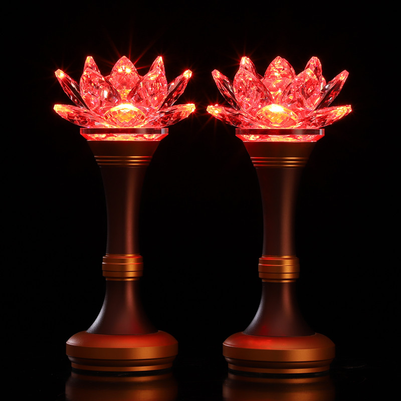 Crystal Lotus lamp Buddha lamp Household pair of plug-in charging LED colorful Buddha front lamp for Buddha Changming Lamp