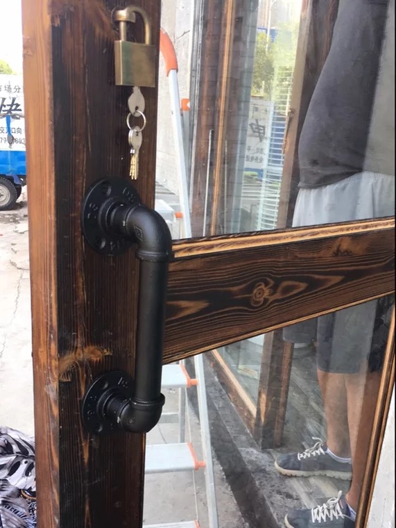 American retro as an old iron art personality creative minimalist-style wooden door?Industrial pull handle with car door handle water pipe