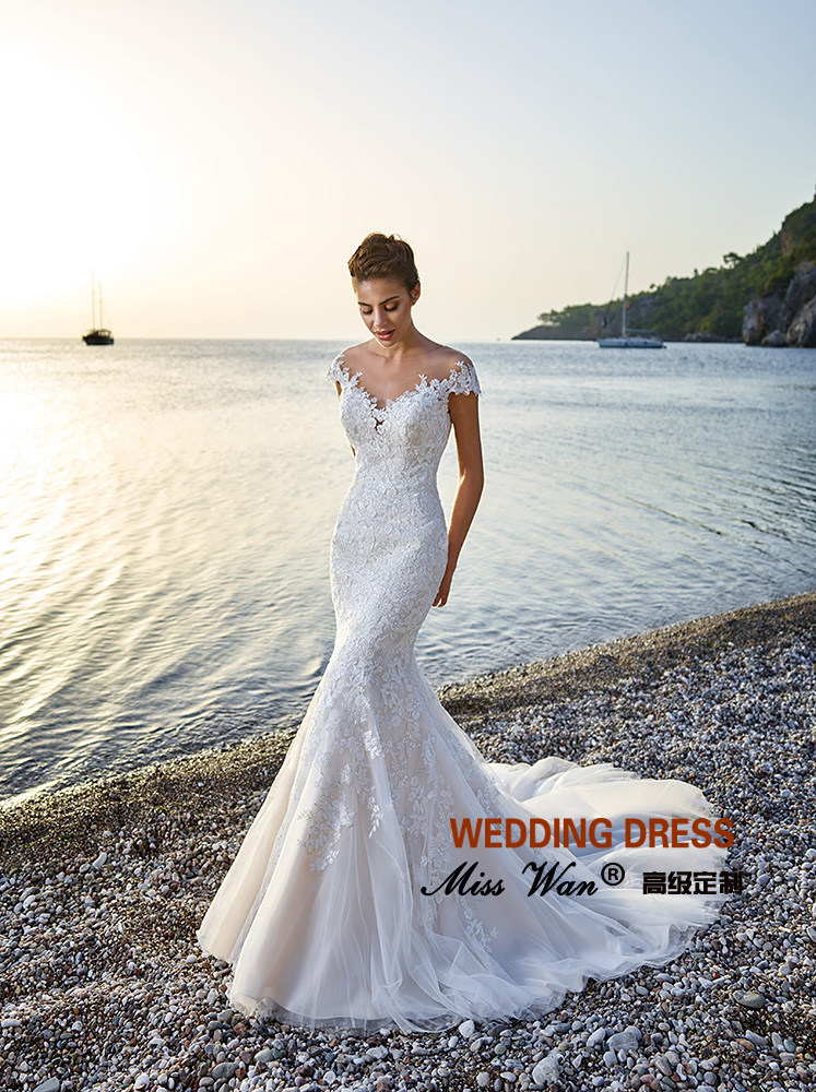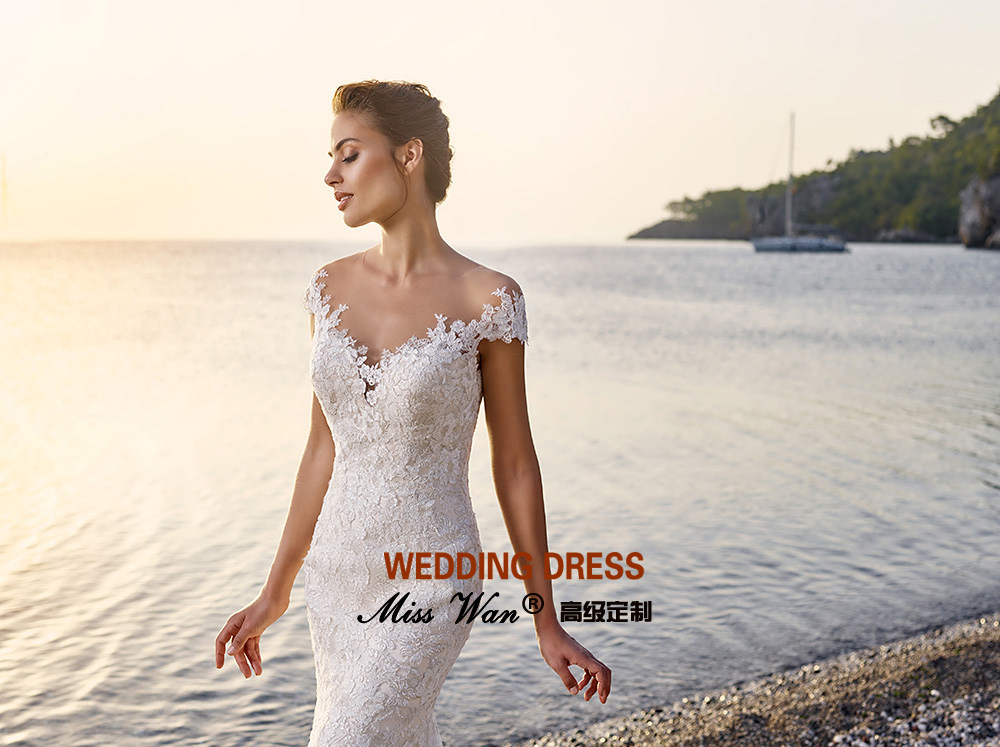 2022 new mermaid wedding dress lace sexy one-shoulder wedding dress big tail wedding dress autumn and winter advanced custom wedding dress