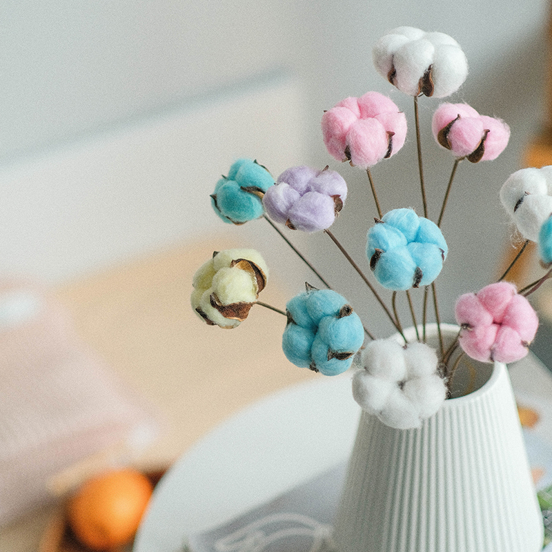 Cotton dry flower bouquet colorful single natural living flower home furnished wedding decoration shoot wood cotton