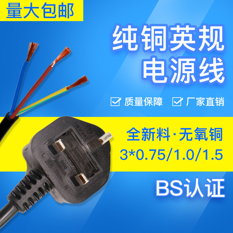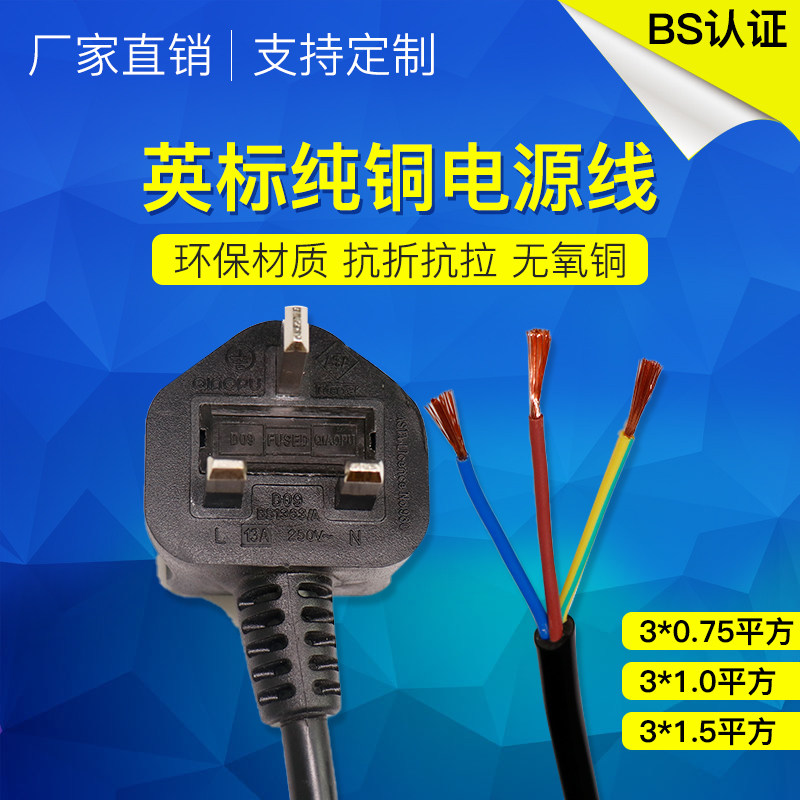 BS Certified British Gauge Power Cord 3X1 5 Squared British British Gauge Plug Line Three Holes Computer Power Cord 1 8 m