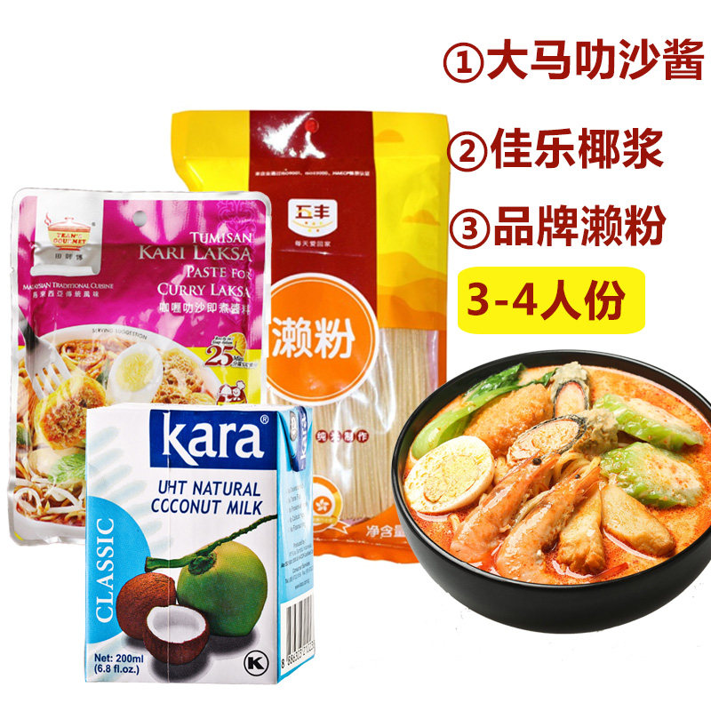 Malaysian Raksha Pink Noodle Curry Powder Soup Base Sauce Package Combo Lasa Jam Coconut Pulp Rice Flour 3-4 share